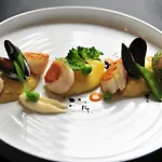 Auberge De La Marine otelinden sadece 200 metre uzaklıkta bulunan Le Bistrot de la Baie, Restaurant du Port, sağlıklı yemekleri sunmaktadır.